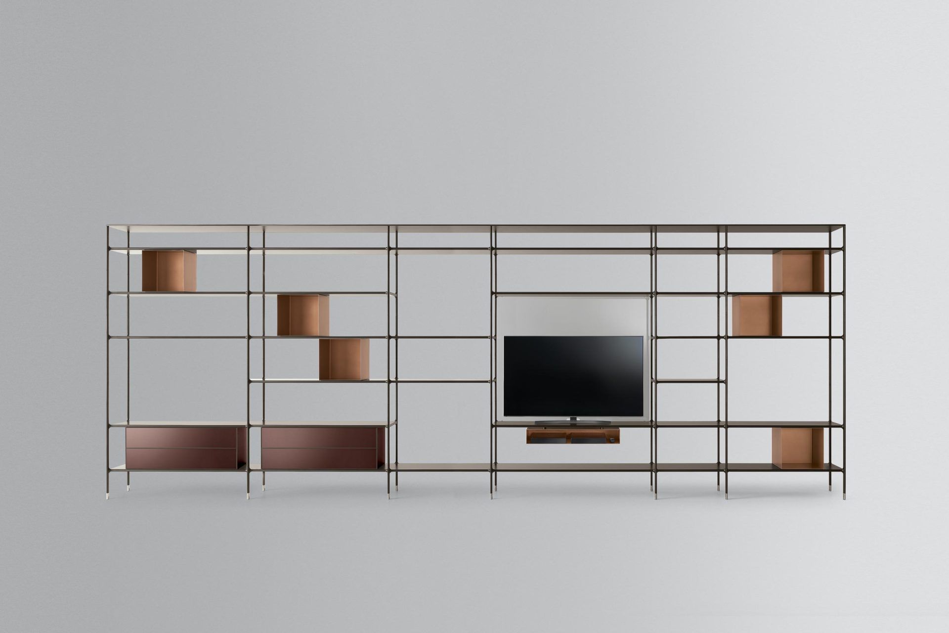 sono i componenti dell'esclusiva visione di Rimadesio, tradotta in una proposta d’arredo e di suddivisione funzionale degli ambienti: sistemi componibili per la zona giorno, librerie, cabine armadio e una sempre più ricca collezione di complementi.