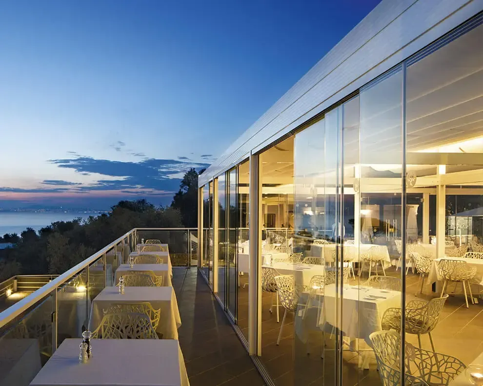 Le vetrate panoramiche GIBUS consentono una superficie visiva unica e priva di interruzioni.